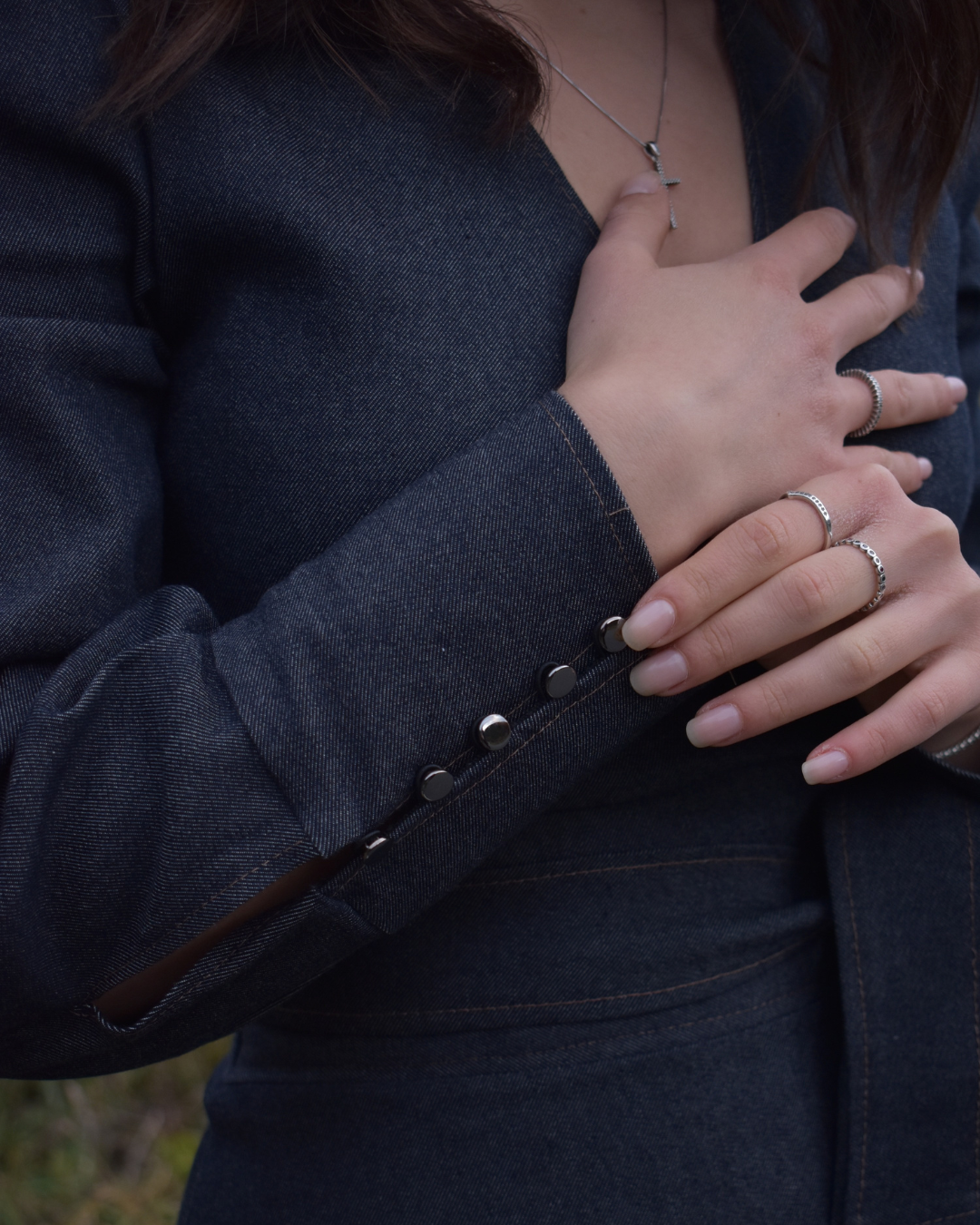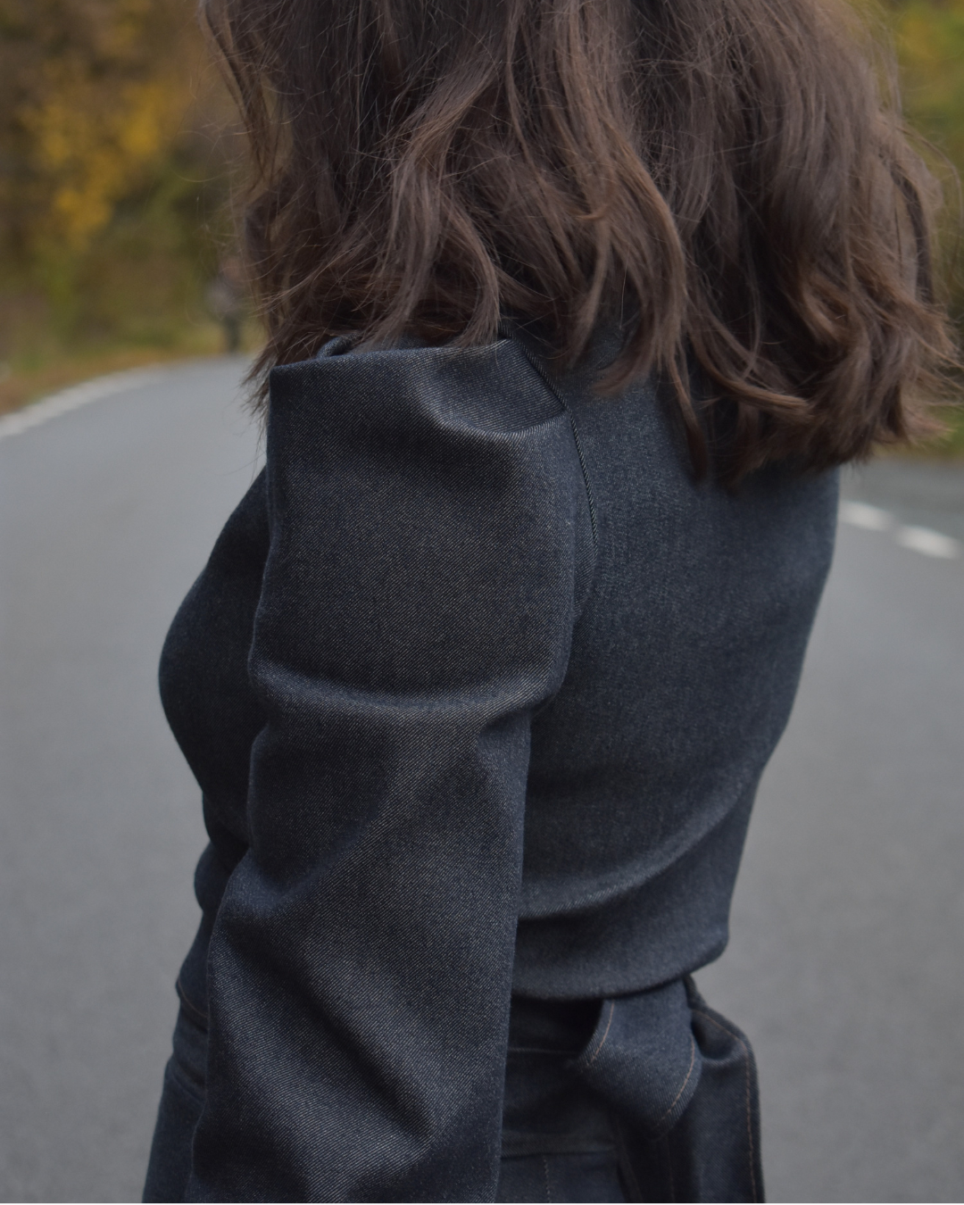 Topul ECLIPSE DENIM este realizat din denim fin, cu croi cambrat și mâneci lungi structurate. O piesă modernă și elegantă, ușor de integrat în orice ținută.